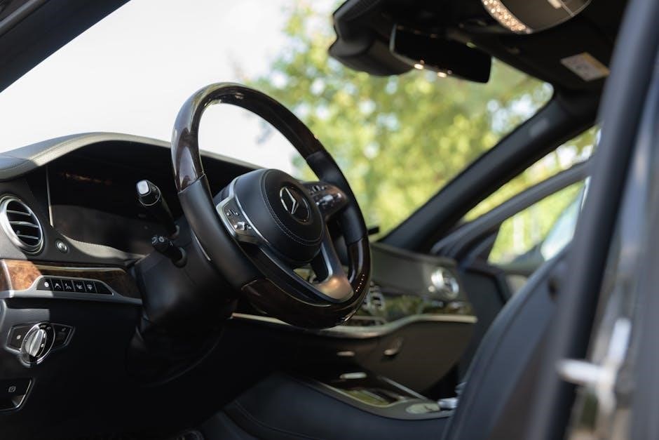 Inspect the exterior mirrors, including manual or power adjustment options, and understand their functionality. Familiarize yourself with the door handles and locks, ensuring secure vehicle access. The vehicle’s wheels and tires are crucial for performance and safety; refer to the tire information section for details.